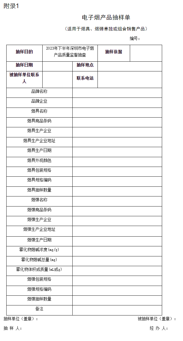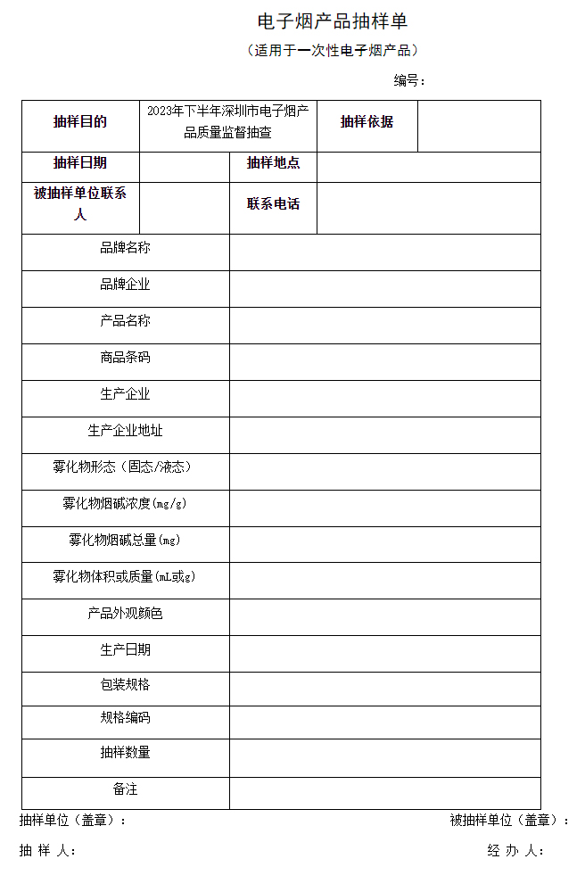 2023年下半年深圳市电子烟产品质量监督抽查方案